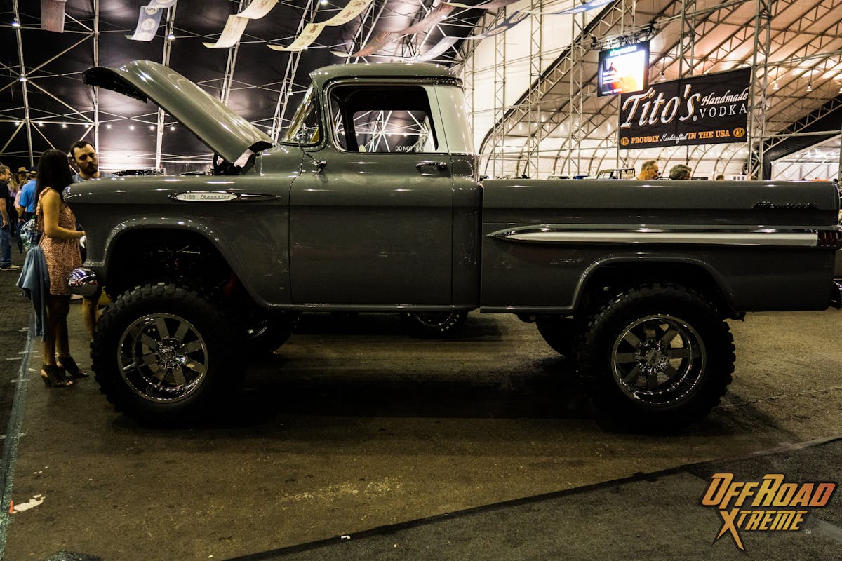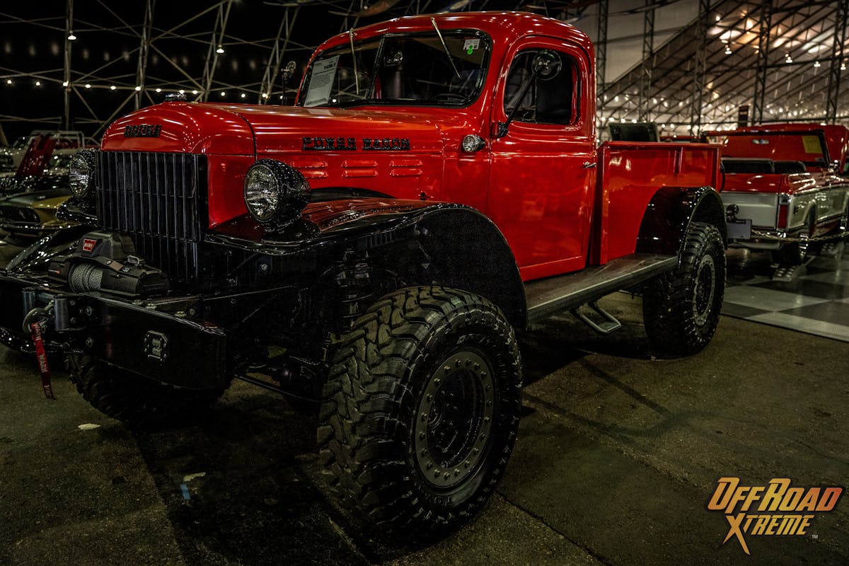 There are antique trucks, 1970s Land Rovers, 1980s 4x4s, built-up Jeeps and pickups, and even a firetruck or two. Every building or tent had several off-road vehicles up for auction. At each of these tents you can get a closeup look at the motor, suspension, tires and other parts of the builds. There was quite a selection of vehicles for the off-road enthusiasts. Below, the classic Power Wagon flatbed and the Land Cruiser caught my eye!