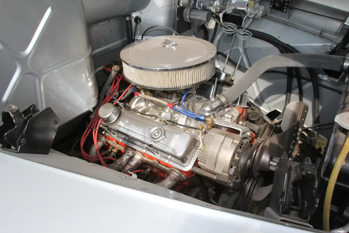 Under the hood, a small-block Chevy does the work. “I assembled it from parts I had from other projects,” Roger says. The engine’s bored 0.030 inch over and runs stock heads, flat-top pistons, a mild camshaft, and a Holley 750-cfm four-barrel carburetor. Cooling comes from a 1963 Chevy 1/2-ton truck radiator, also sourced from Roger’s stash, and both mechanical and electric fans. Power runs through a rebuilt TH400 automatic transmission and an NP203 transfer case.