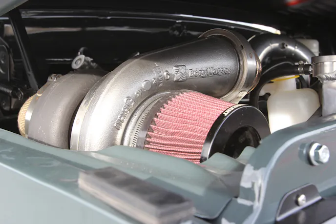 To kick off the build, Zach scored a 2008 Ford F-250 frame from Facebook Marketplace for $500. The Dodge had once been fitted with a Ford 351W V8 and a four-speed automatic, but he had no interest in reusing that setup. Instead, he went big and set a built Cummins 5.9-liter 12-valve running compound turbos between the framerails. The primary turbo came off a John Deere combine. The engine also sports a ported and polished head, ARP head studs, an upgraded injection pump, and a three-piece exhaust manifold. The result is a dyno-proven 550 horsepower.