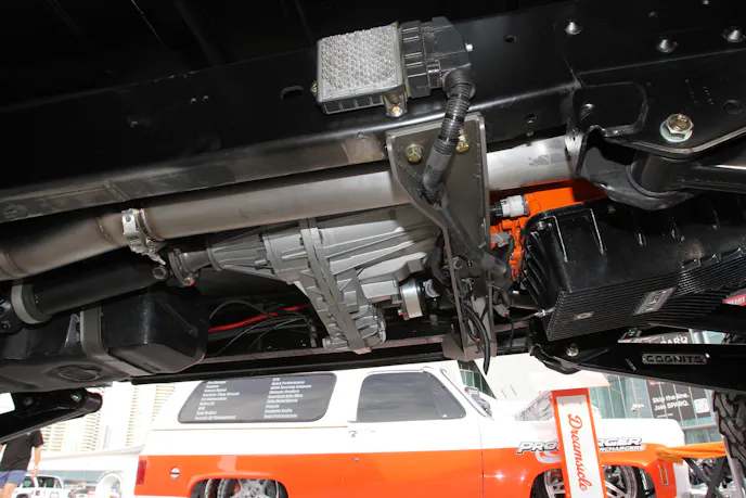 Bolted to the Cummins is a Merchant Automotive–built Allison 1000 six-speed automatic transmission. Right behind it sits a rebuilt NP273 two-speed transfer case from Zumbrota Drivetrain.