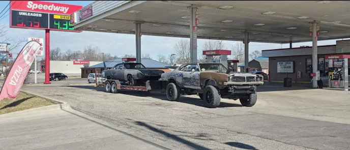 Dave’s 1969 Dodge Charger Cummins 4×4, which he calls “Bulletproof,” isn’t a museum piece or a trailer queen. In fact, he uses the car regularly, no apocalypse required, as shown in the photo above. He reports that it gets 22 mpg with the air conditioning on while pulling a trailer with another Charger on it at highway speeds. He also says it has the driving mannerisms of a 1/2-ton truck.