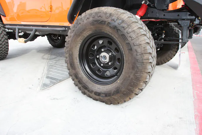 SFJ4x4-sourced D-window wheels wear LT285/75R16 Falken Wildpeak M/Ts that measure 33 inches tall.