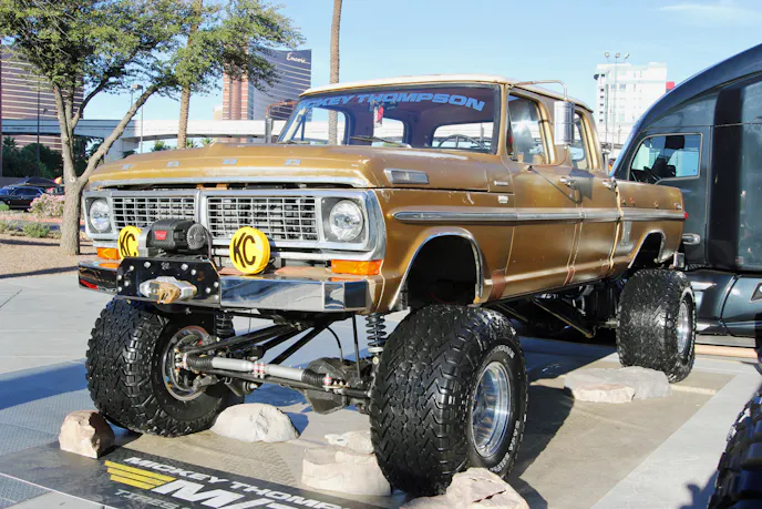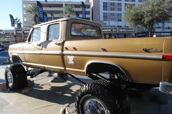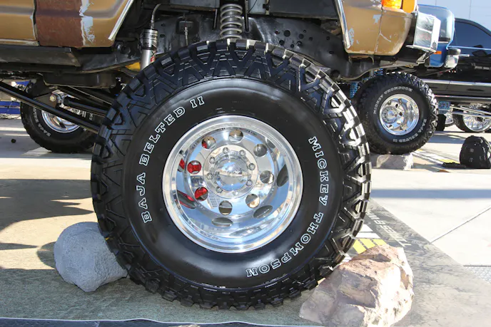 The F-250 rolls on Mickey Thompson’s new Baja Belted II tires in 18.5/39R17LT size, mounted on the company’s new MT Classic Forged wheels. These particular wheels are 16 inches in width.