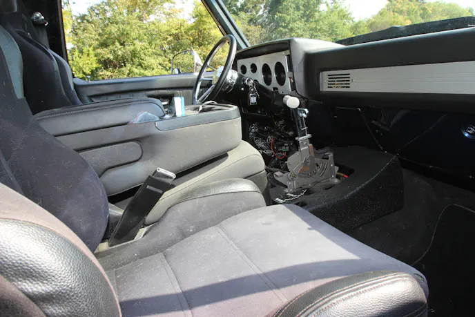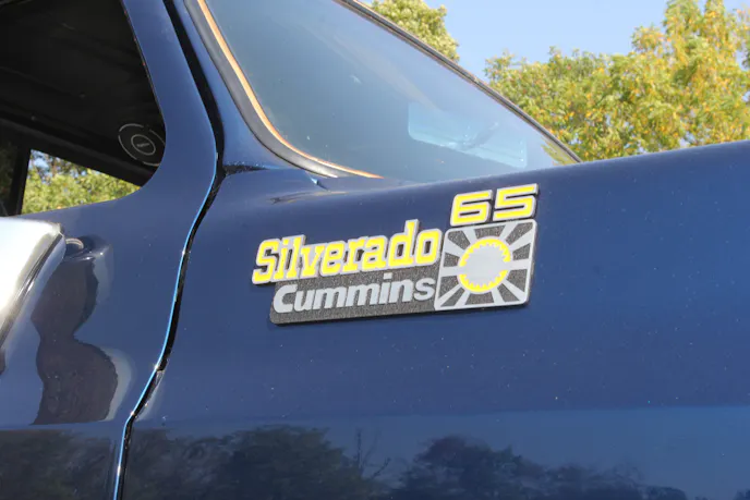 Forrest upgraded the interior with a Squarebody Syndicate steering column and gauges, Corbeau seats, and a console from a 2016 Chevy truck, among other things. On the outside, modifications include a Warn Enforcer front bumper and custom “Silverado Cummins 65” aluminum emblems on the front fenders.