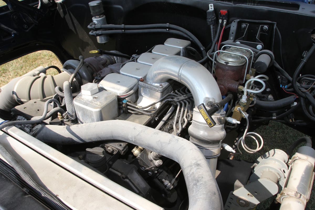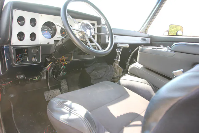 Forrest obtained the engine from a 1996 Dodge 3500, which he purchased specifically as a donor vehicle for the Chevy’s build. The Cummins is completely rebuilt and modified to make big power. Some of its features include marine-application pistons, an upgraded camshaft, and larger injectors. Additionally, it has a 63/67mm turbocharger, modified P-pump, AirDog lift pump, and ARP bolts and head studs. But that’s not all—it also has Hamilton Cams tappets (and an Industrial Injection tappet cover), 4,000-rpm governor springs, and 60-pound valve springs. A pair of Optima YellowTop batteries are mounted under the cab between the framerails, and a five-inch-diameter exhaust carries away spent gases.