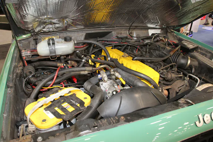 There was no reason to mess with perfection, so Brad left the 4.0-liter I6 untouched. Even with 200,000 miles on it, the engine still ran strong. He did add a custom exhaust system and an Optima YellowTop battery.