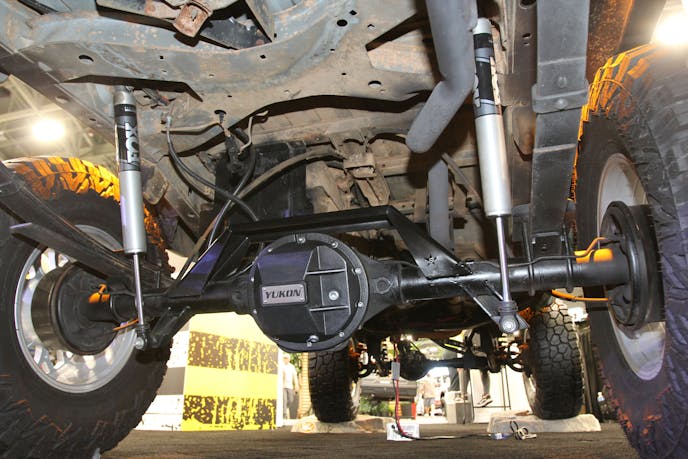 Out back, he swapped in a Chrysler 8.25-inch axle from the same 1988 Cherokee. Like the front, it runs a Yukon Dura Grip and a Yukon diff cover. Brad also welded on a Barnes 4WD universal axle truss for extra strength. Both axles are regeared to 4.56:1 with Yukon gears.