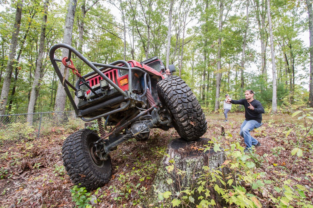 The suspension for the big Jeep is also fitted with trusted components. This approach serves to make sure Brandon and Sally make it over, around, or through whatever gets in their way. Fourteen inch King coil-overs exist on all four corners. The front features a three-link setup while the rear is a double triangulated four links. Limiting straps help prevent overextension of the YJ. Rock Ram hydraulic steering components make turning the big rig a breeze.