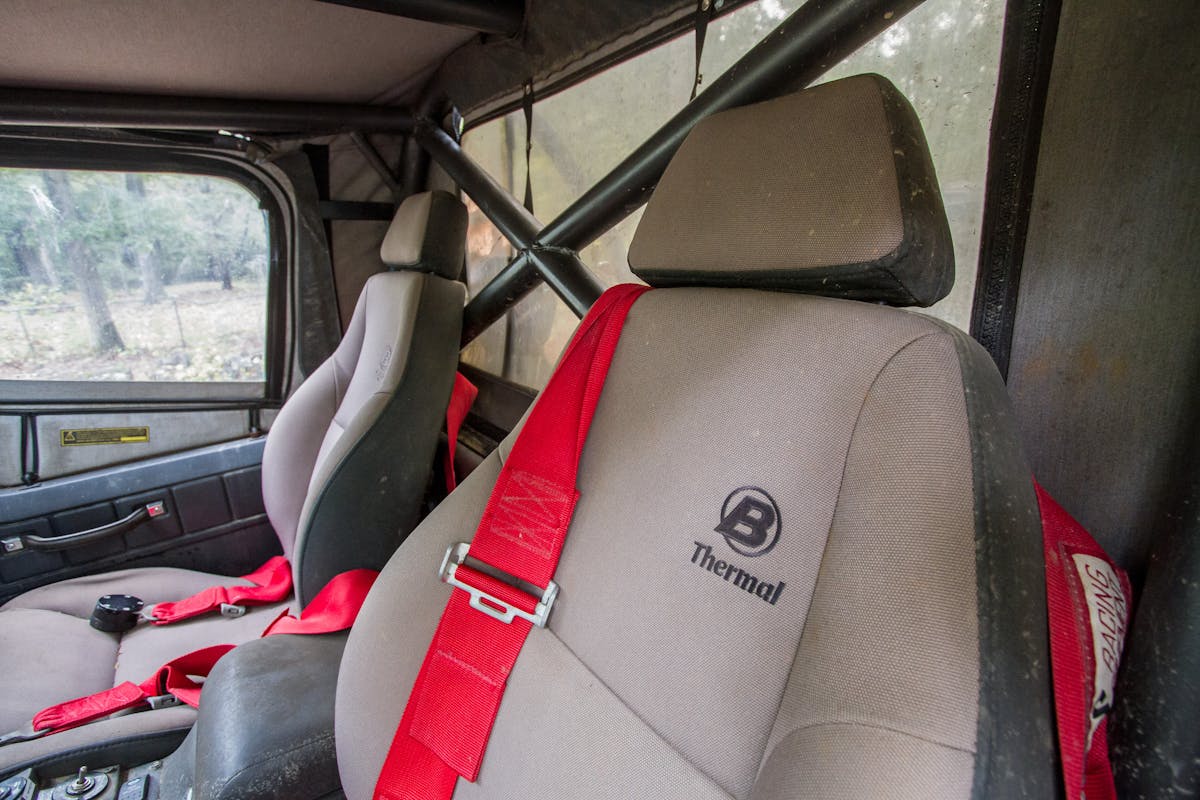 R.J.S. five-point safety harnesses keep occupants planted while doing the off-camber stuff. Focal and JL audio system components keep things just the way Brandon and Sally like it. Nice and loud.