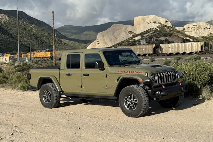 A standard-issue 2025 Gladiator Sport starts at $40,095, including a $1,995 destination and delivery charge. Stepping up to a Mojave will cost $52,995. Our top-spec Gladiator Mojave X tester checks in at $68,425, which includes the $10,000 Mojave X package, $2,095 Cargo Group, $1,050 heavy-duty rock sliders, and an additional $2,285 of options.