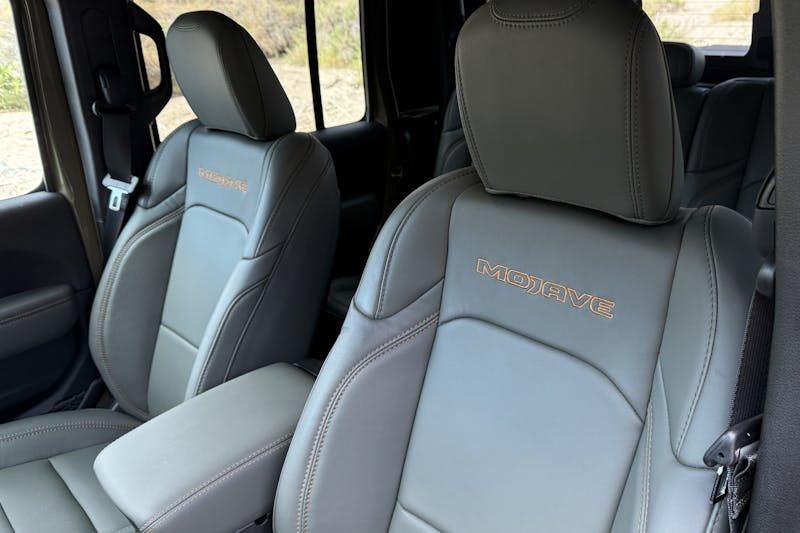 Taken as a sum of the parts, the Mojave X package is absolutely worth the price of admission. The Gladiator’s interior is now properly upscale. The leather seats are comfortable for long slogs, and we adore the addition of power adjustability (finally). The audio system is adequate considering that the Gladiator’s interior can be quite loud (even with the accessory Mopar roof panels). That said, we love the new 12.3-inch Uconnect touch screen. Everything in the truck’s interior is thoughtfully laid out and it makes great use of the space available. The rear seat can prove a bit tight for adults, but hauling around a family of four, including one in a car seat, proved to be a non-issue.