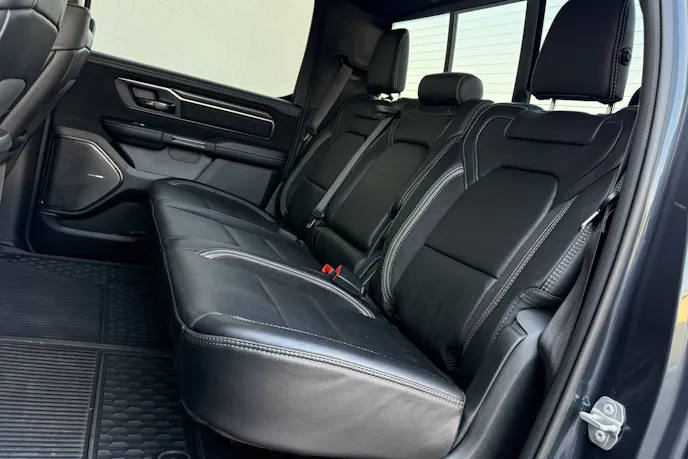 Leather-trimmed massaging bucket seats are included for the driver and front passenger. Rear-seat passengers aren’t left out, either, as the RHO offers Ram’s class-exclusive reclining rear seats that are also heated and ventilated. Tunes are provided by Ram’s premium 19-speaker audio system from Harman Kardon.