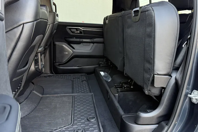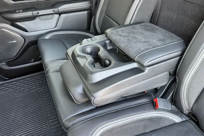 The 2025 Ram RHO is built on the company’s new sixth-generation platform, which underpins all the refreshed 2025 1500 pickups. With that comes the latest tech and comfort features. Our RHO came fit with the RHO Level 1 Equipment Group, which essentially checks all the boxes. The truck features more than 50 inches of digital displays divided between four areas. The instrument cluster specs out to 12.3 inches and is fully customizable. A 12.0-inch infotainment display is standard, however, ours came with the optional 14.0-inch unit. Also part of the optional package are a 10.0-inch head-up display and 10.3-inch passenger media screen.