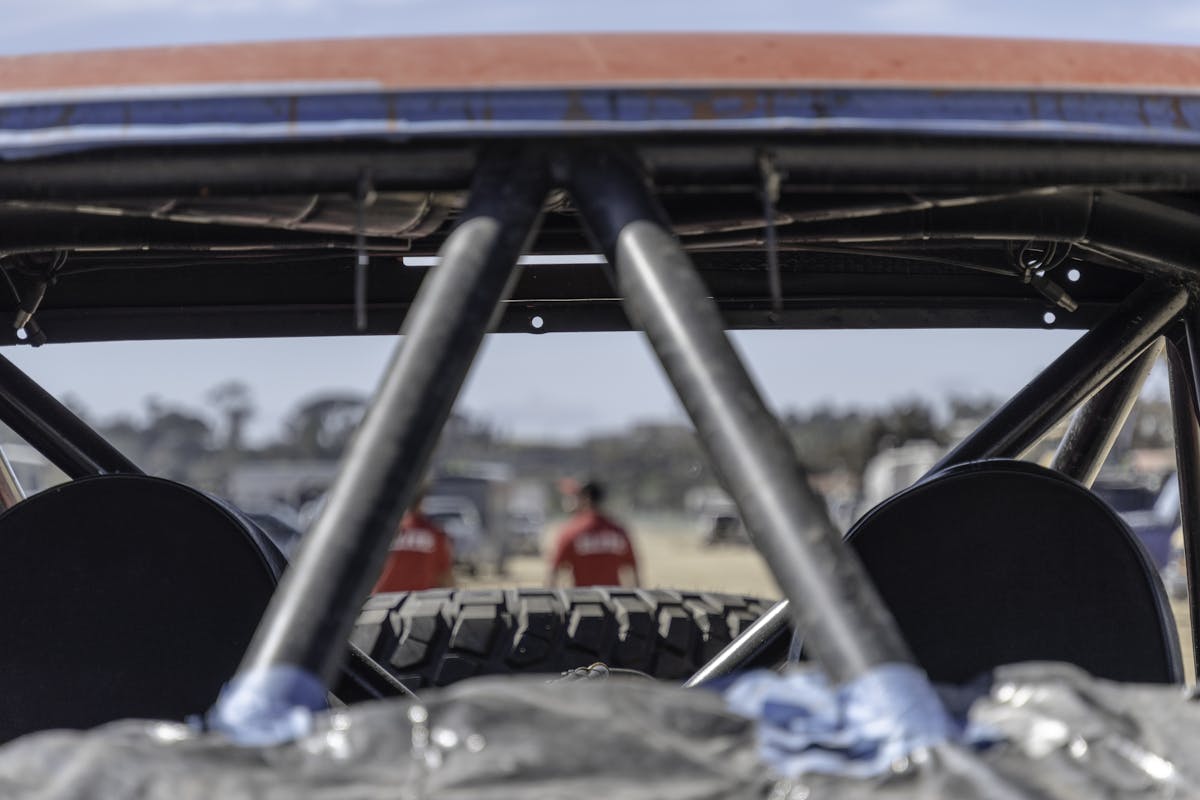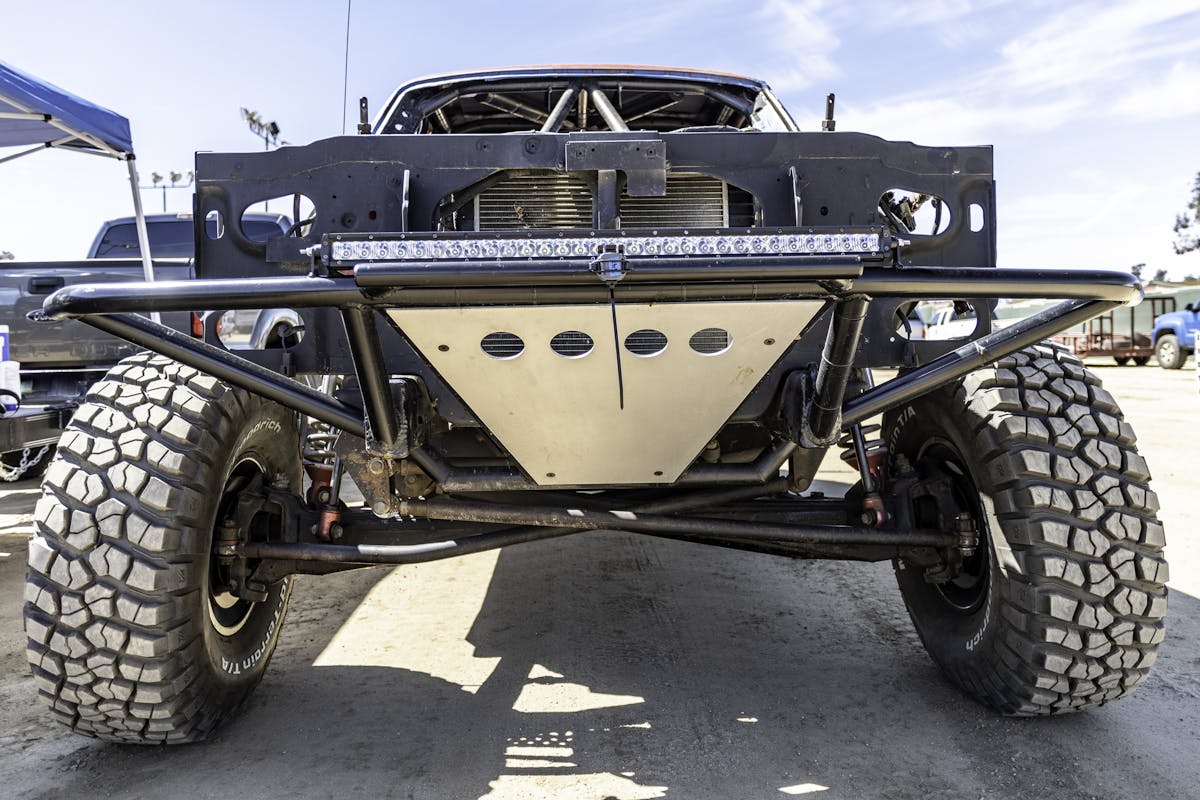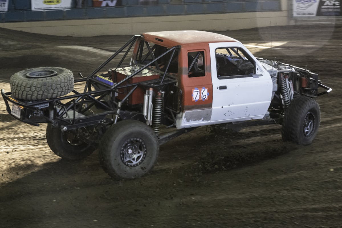 I found Aaron sitting in the pits in a folding chair under a blue pop-up canopy next to his truck in between runs. Aaron was happy to share his story about how his love for dirt and racing got started. Beginning as a motocross rider in his early teens, Aaron says that years of riding and collecting injuries had him looking for a new way to enjoy his love for off-roading. Adding another pair of wheels and a cage seemed like a logical way for him to do just that. This led to him to learning what it would take to build a prerunner tough enough to satisfy his passion for unforgiving terrain and big air.
