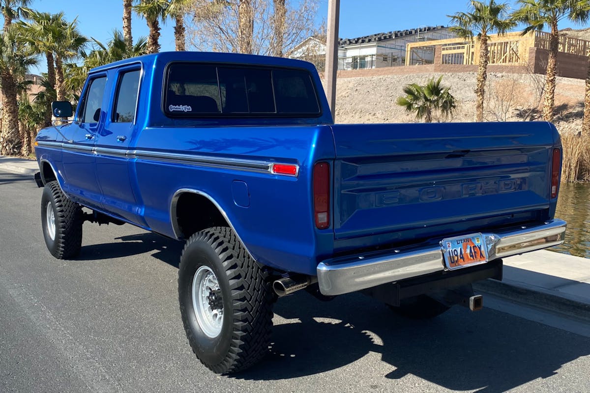The pickup seen in the pictures is a rust-free Arizona truck that comes equipped with a factory air conditioning system. The bodywork of this ‘77 Crew Cab sports a gorgeous metallic blue custom paint job. All the body parts were sourced from LMC Truck, and the interior comes equipped with plush carpet. Flex steel seats make the cab a comfortable place for the occupants.