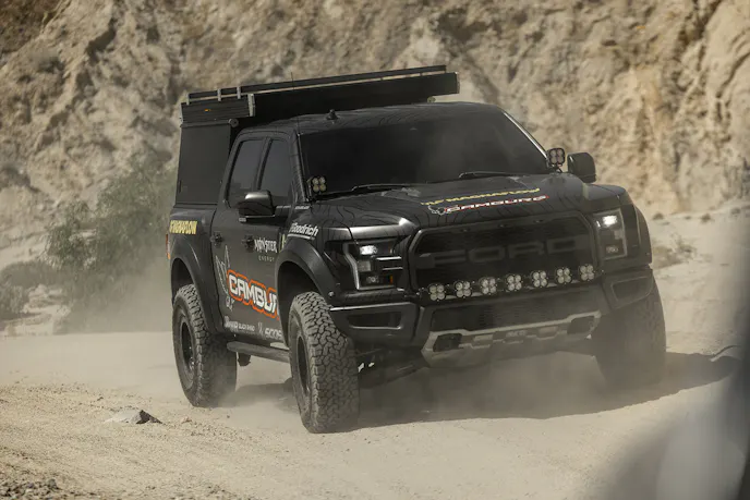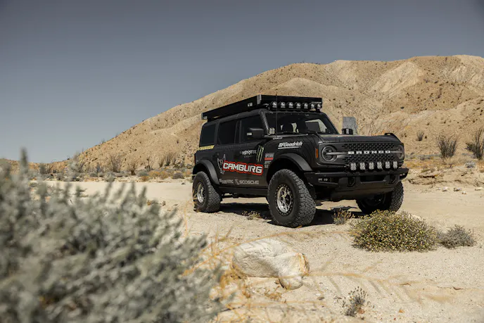 The Camburg crew had just about the choicest vehicles on their Anza Borrego desert adventure. We spy a Ford Raptor R, a Ford Raptor decked out for go-fast overlanding, a Ford Bronco Raptor, another tricked-out Ford Bronco, a full-size RAM 2500, and a few more trucks built for fun daily driving.