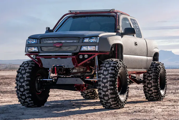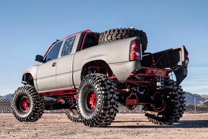 A big truck needs big meats, and the Silverado rolls on substantial 15/43-17LT Mickey Thompson Baja Pro XS tires. Each tire is mounted on an 8.5-inch-diameter Dirty Life Roadkill bead lock wheel. Full hydraulic steering from PSC Motorsports makes pointing the big tires effortless.