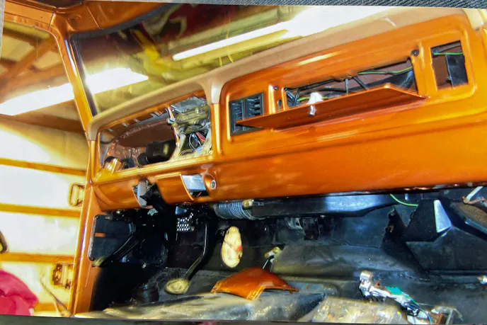 Under the hood is a rebuilt 429ci V8 big-block engine that Delbert purchased from a private seller. He disassembled the engine and sent it to Terrel Automotive Machine in Salem, Indiana, for the machine work. The completed engine is simple by today’s standards, yet powerful. It’s fitted with flat-top pistons and a high-rise, dual-plane Weiand Stealth intake. Bolted to the intake is a Holley 750 cfm four-barrel carburetor with vacuum secondaries and a manual choke. Exhaust gases are whisked away through a set of L&L Products fenderwell-exit headers with 3-inch collectors feeding dual exhaust. Other underhood equipment includes a Motorcraft distributor, a Ford F-250 radiator with a factory shroud, a mechanical fan, and an Optima YellowTop battery. It’s worth noting that the truck has functioning air conditioning to counter the hot Kentucky summers, and the engine is fitted with factory aluminum finned valve covers.