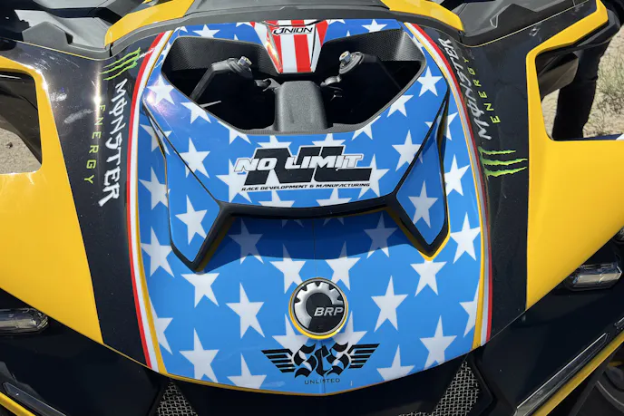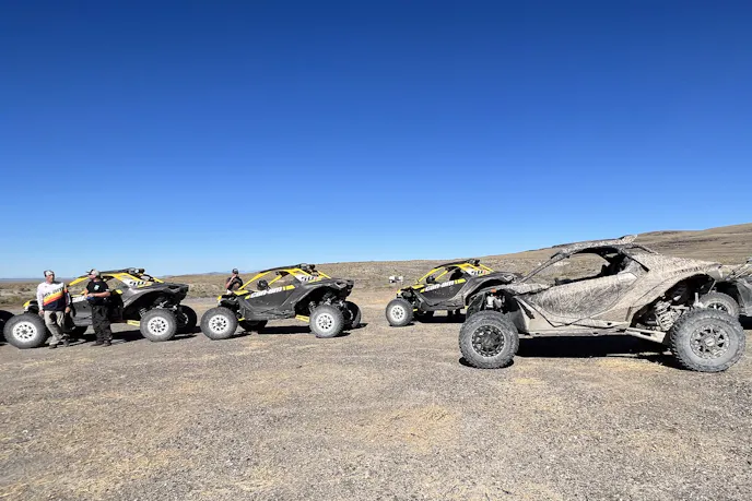 Additionally, Phil Blurton, a Can-Am factory driver and three-time BITD Champion, would lead our group on this 170-mile high-speed off-road adventure. His No Limit Race Team was on hand with pit support. Can-Am also decked out each of the journalists with custom Alpinestars driving gear. I sported my own Simpson Devil Ray Helmet, but helmets were supplied for anybody who needed one.