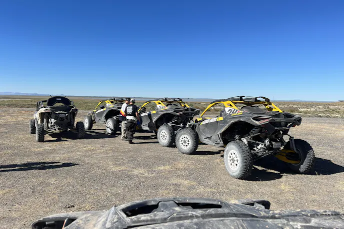 On the first ride day, we went to our start location on the outskirts of Hawthorne, Nevada, where we had a hot breakfast. A safety briefing was hosted before we dispersed to the line of Maverick R cars. Apparently, I was the last of the group to claim a car, but luckily for me, it was the all-blacked-out one that I had been eyeballing the whole time. The Maverick R X RS comes in two color packages only; Carbon Black and Neo Yellow or Triple Black. All the cars in the fleet were decked out in the eye-popping Neo Yellow, except for a pair in Triple Black. One of which would be my ride for the entire adventure.