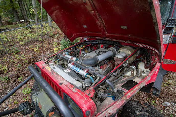 Since the purchase, Brandon and Sally have had to do some minor maintenance. Brake pads, calipers, an axle seal and a repair to the CB have been completed. Brandon admits, “The only thing that truly confuses me is the rear axle vent blows differential fluid out of it.” To combat the issue Brandon added a coolant reservoir to the end of the rear axle vent. He did this to prevent oil from blowing down onto the rear passenger brake rotor. This had caused the brake to smoke during operation in the past. Brandon said, “It works great but still I am at a loss as to why that happens.”