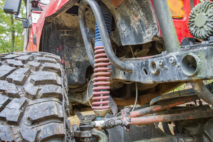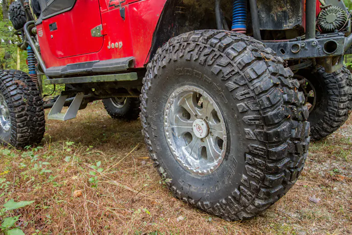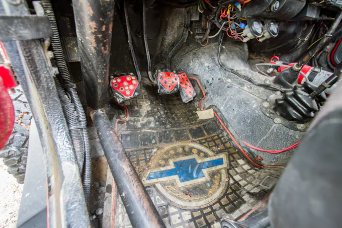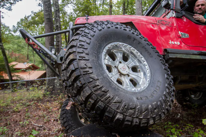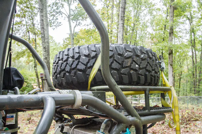 Forty-two inch Super Swamper Irok tires are wrapped around Moto Metal wheels. The wheel also features Staun internal beadlocks to help keep things together at low pressures.