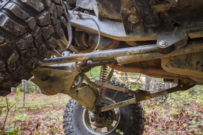 The drive train of the YJ includes components chosen for strength and reliability. A West Racing tuned L98, 383-ci motor is the heart of it all. It is backed by a Dodge version of the NV 4500 manual transmission. A Centerforce clutch makes sure the power makes it to the Atlas 2 transfer case.
