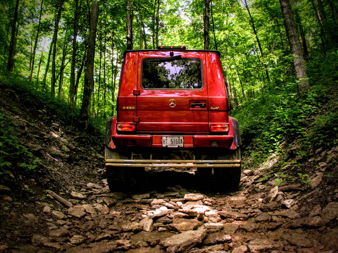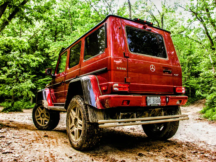 I hung up the phone and quickly got to securing a day of mudding with local Cincinnati 4×4 specialists, All-Terrain Outfitters, who recommended an off-road park an hour away in Kentucky called The Dirty Turtle. With what seemed like endless acres of trails at our disposal, as well as a trusted recovery vehicle/spotter leading the way, I prepared for the testing and photographing of my Mercedes-Benz G550 4×4² loaner, not knowing what to expect from the 3½-ton German juggernaut.