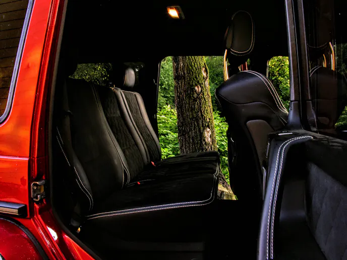 Despite its impressive size, and having incredibly comfortable front seats that are surrounded by a hefty array of luxury enhancements, the 4×4² is still a somewhat spartan vehicle with a lot of design flaws. Rear seat comfort is modest at best, offering just 41.9 inches of legroom and a seatback position that is nonadjustable and almost completely upright. Its pivoting rear cargo door may look massive, but it offers very little loading space, and for being military-bred you’d expect more storage compartments throughout. And even though they’ve been a G-Wagen staple for decades, the annoying mesh cupholders seem to be more of an afterthought than a standard amenity.
