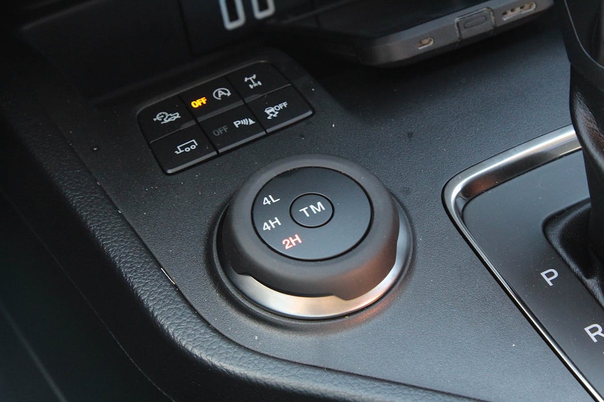 Below the touchscreen, the buttons for controlling the audio and A/C systems were easily reachable. There were also outlets for 12V DC connectors and below those, USB ports as well. Near the USB ports were six buttons to control things like the locking rear differential, auto start/stop (which I had to press every time I got in; I hate auto start/stop), traction control, and so on. The floor shifter was the last piece of the puzzle before getting to the center console cubby. The cubby was really small, no bigger than a cubic foot, and I didn’t see the point it using it for storage space beyond, say, sunglasses and a small toolkit.