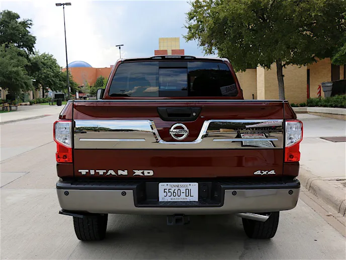The Titan XD looks more 2500 than 1500. The macho grille is flanked by massive headlights. In Crew Cab form, the XD is more than 20 feet long. More than half (151.6 inches) of that is just wheelbase. Out back, there’s a 6.5-foot bed.