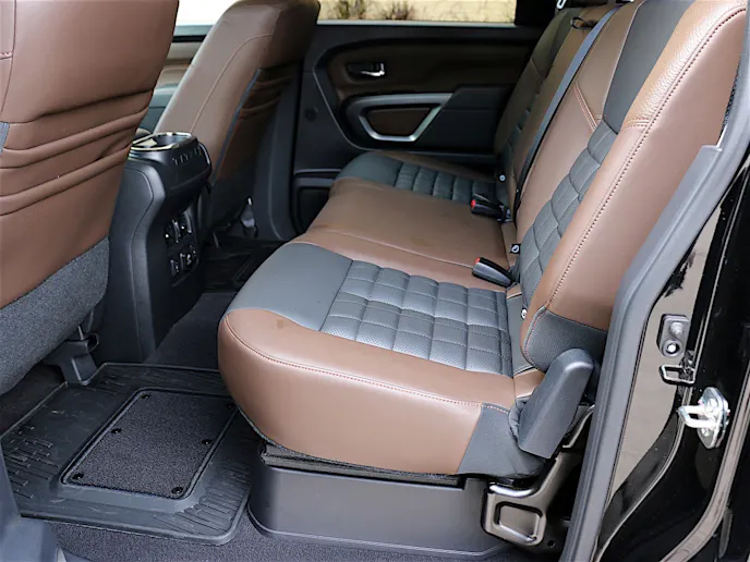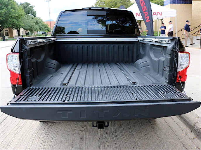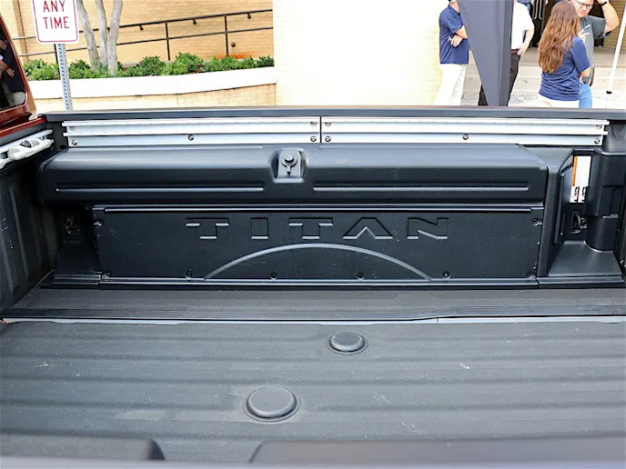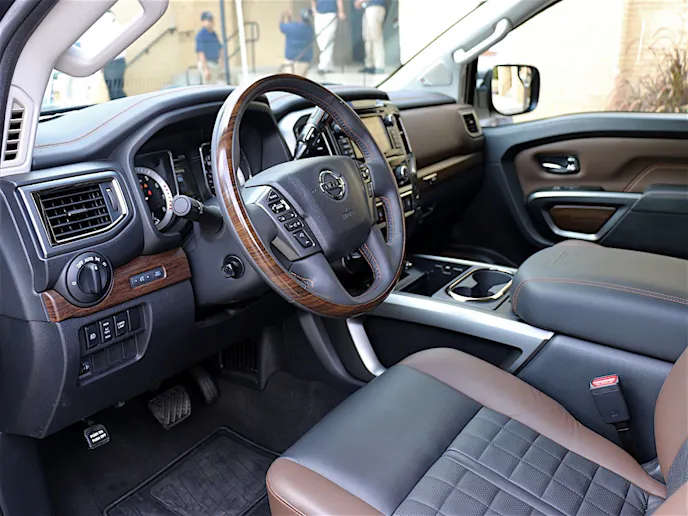 Both versions of the Titan can be stuffed with a long list of available technologies. Those include voice recognition controls for the audio and navigation systems, the vision-enhancing Around View Monitor, keyless push-button starting, rain-sensing wipers, and heated seats.