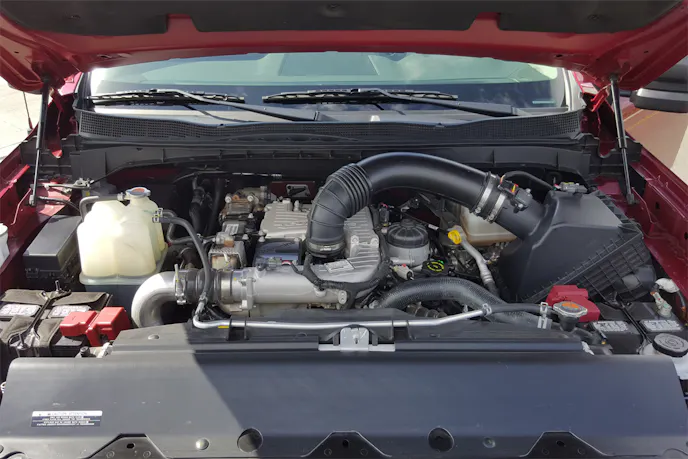 Nissan offers the Titan XD with a 5.0-liter Cummins turbo-diesel V8. That’s good for 310 horsepower and 555 pound-feet of torque, all of which are transmitted through a heavy-duty AISIN six-speed automatic. It would be misleading to say there’s no lag, but I can say without hesitation that once the boost builds up, the Titan XD shoots forward like a 3+ ton bullet.