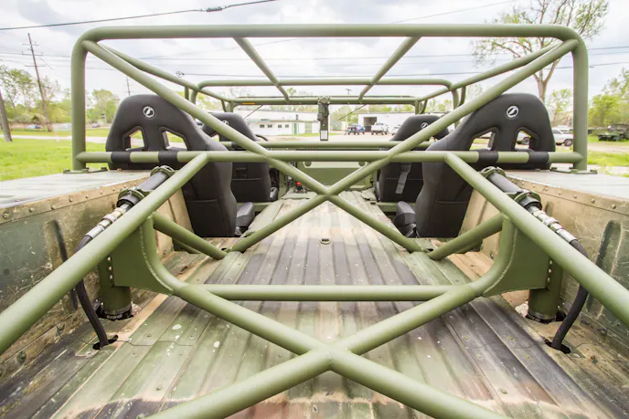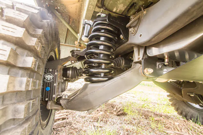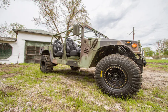 The crew started with a 1990 M998 HMMWV. Steve explained, “We started with a completely stock truck. It came with a non-turbo charged 6.2-liter with a three-speed transmission. We immediately swapped out the 160hp 6.2-liter for a 650hp LSX 454.” The bump in power is noticeable, to say the least.