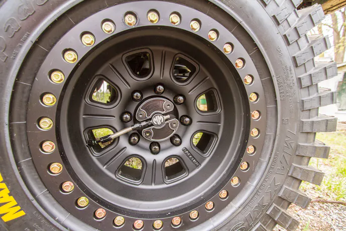 Inside the vehicle, occupants sit pretty in Corbeau suspension seats. They are also buckled in via five-point harnesses from RJS for the ultimate in safety. Raceline beadlocks ensure that super-low pressures can be run. In addition, all of the wheels were fitted with a Mountain Machine central tire inflation system (CTIS). The whole shebang is then wrapped in Maxxis Trepador 37-inch tires.