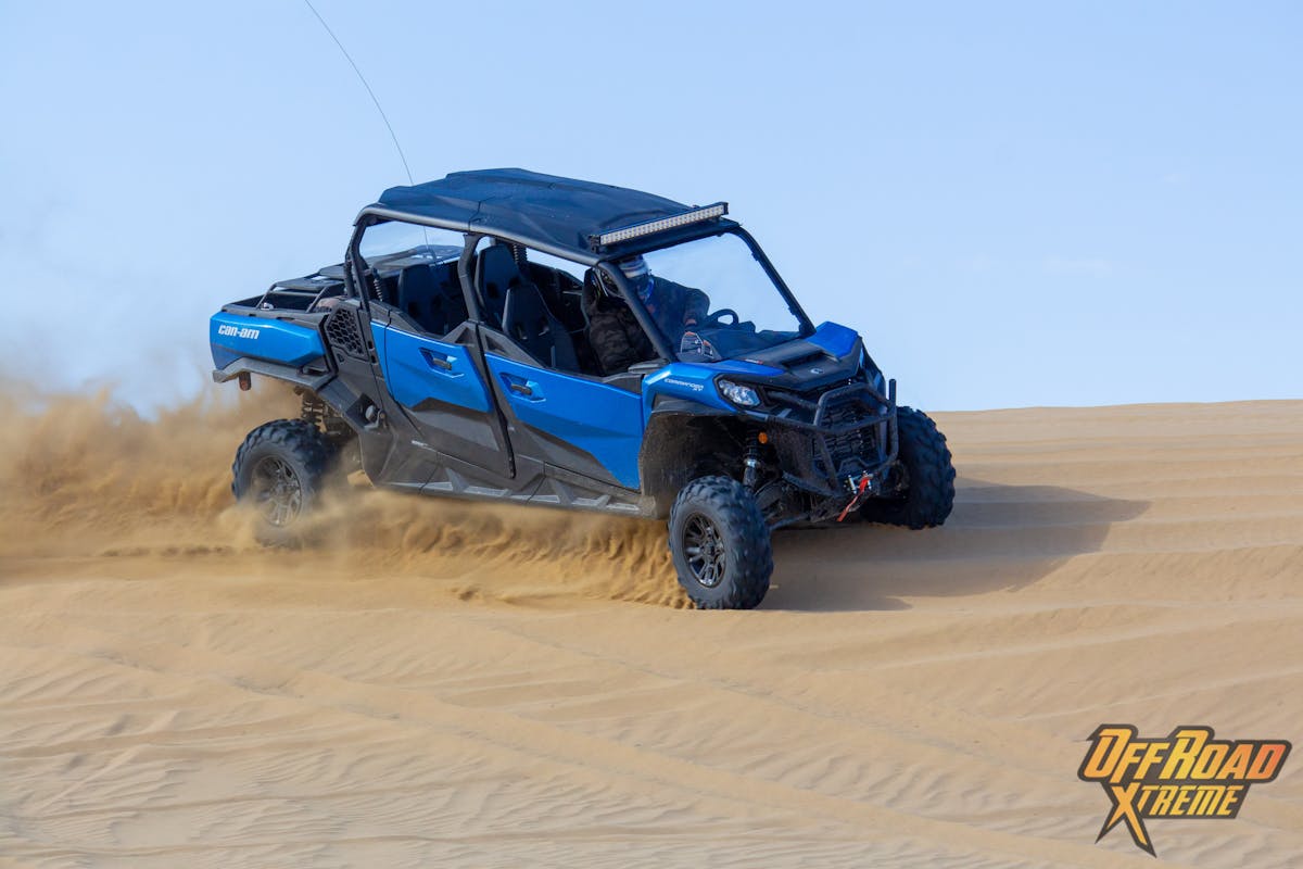After a bit, I arrived at some dunes. These weren’t as robust as the ones found in Pismo or Glamis, but they had enough variation and breadth to give the Commander a run for its money. Equipped from the factory with standard 28-inch XPS Trail King tires, in the loose sand the Commander did start to feel boggy. That is when I engaged the Commander’s Sport Mode, and it sent significant power to all four tires which helped me traverse through the open terrain.
