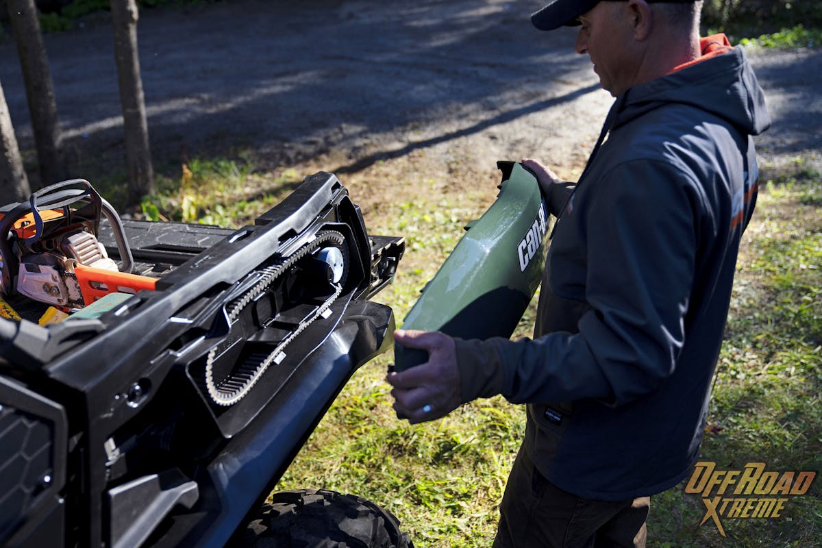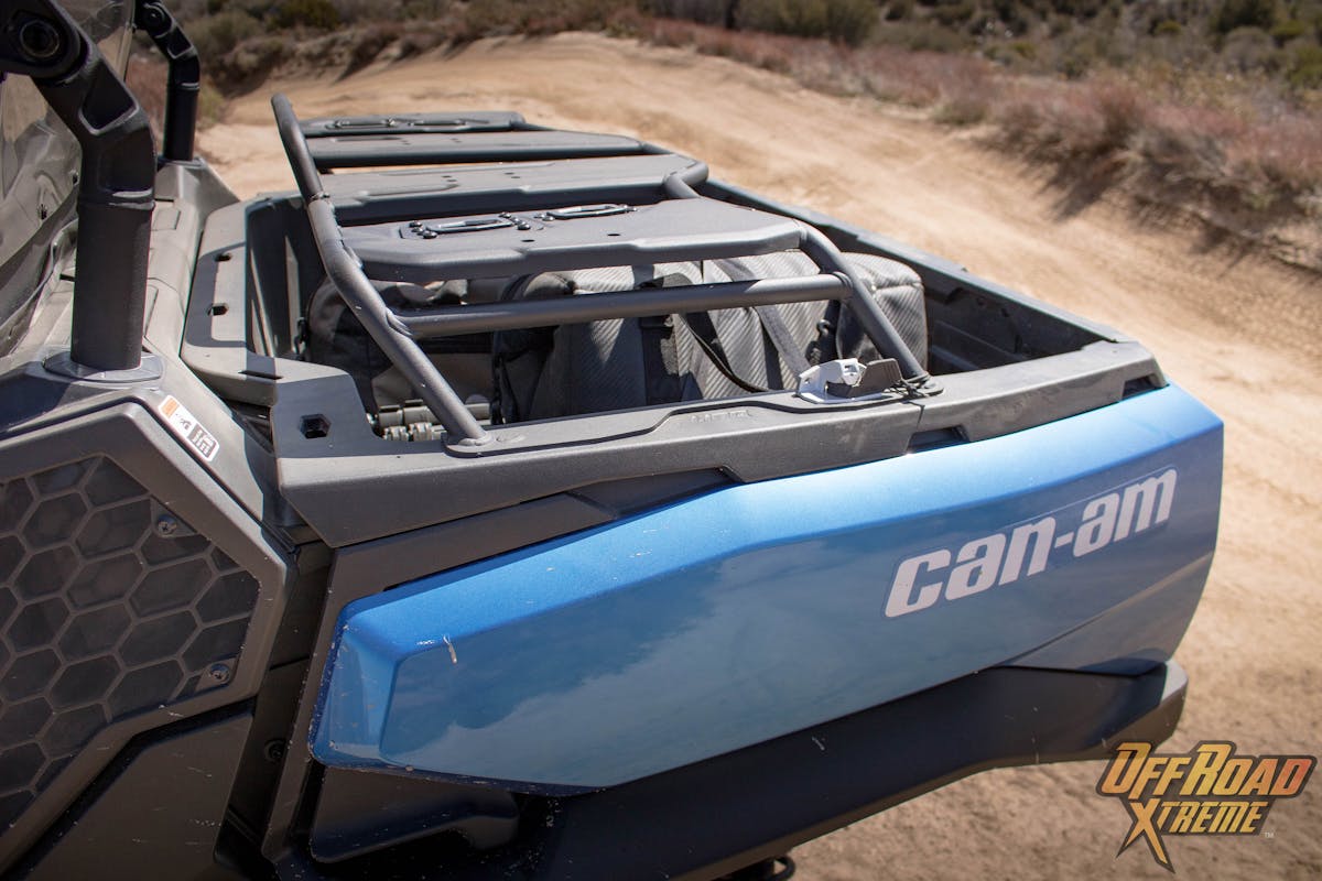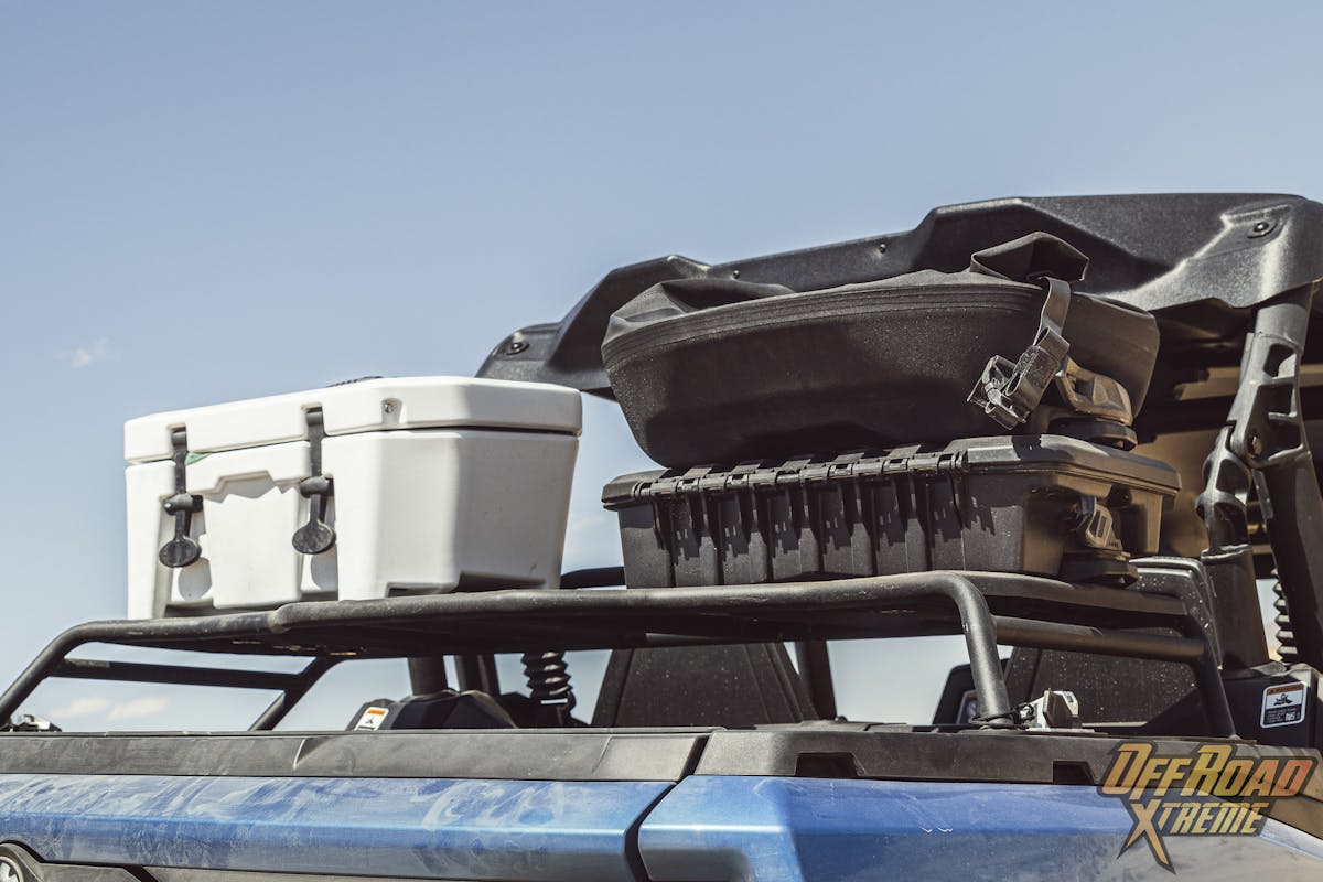 When loading up our gear, I could not figure out some of the factory tie-down anchors but soon discovered Can-Am offers a proprietary attachment method called the LinQ System. After further exploration, this allows for dozens of cargo accessories to be added or swamped out. Everything from soft and hard storage, to coolers, tool kits and gun holders, the LinQ attachments hold it all. The best part is no tie downs are required with the LinQ System.
