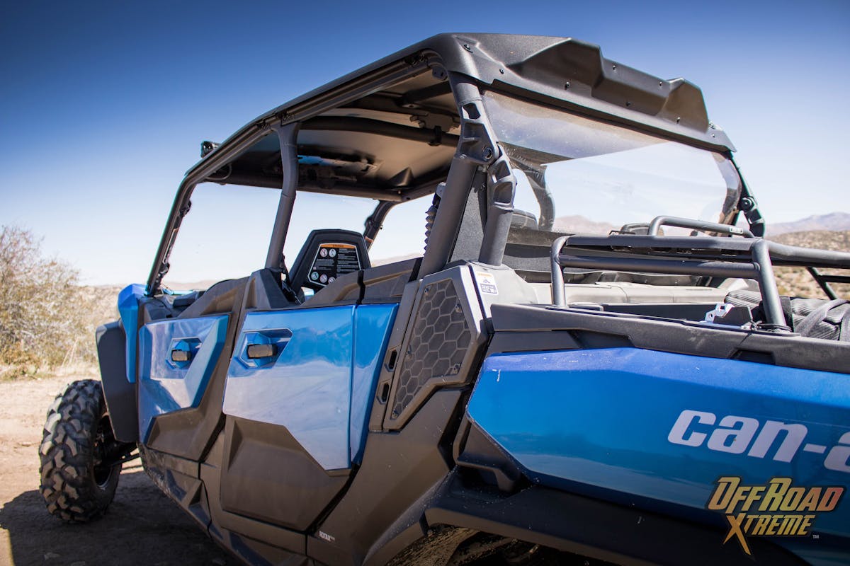 The Can-Am Commander XT may look like a standard SxS, but once you start walking around the vehicle, that perspective quickly changes. At first glance, I was surprised to see this particular model with windscreens fitted to the front & rear. For us desert dwellers, it is an uncommon feature. As one who enjoys wind in my face, this did not bother me, and I can see the advantages for applications in colder or wetter environments. Either way they appear easily removable and I understand Can-Am offers several windshield options, such as power wipers, vented, and half windshields too.