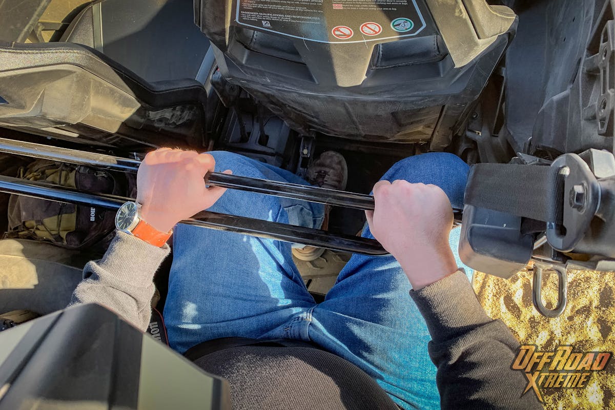 One pleasant surprise was how the spacious backseat was with plenty of leg room. With the rear passengers sitting more upright then in the front seat, leg room can come out a premium on other SxS vehicles. In the Can-AM Commander XT 4-door, a full size adult has no worries, the front seats are on adjustable sliders for any extra accommodations. There are also plenty of grab handles for those moments of concern.