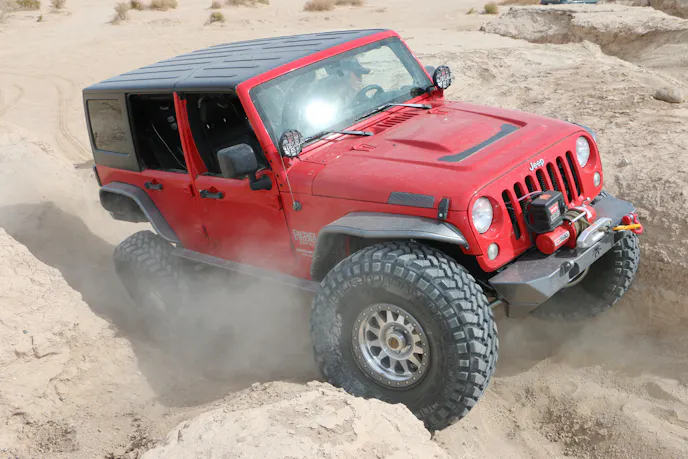 Ramped up to a massive 40 splines, Salazar would need to hunt down some gnarly obstacles to find something that will break one of these 4340 steel axles. Set at 71-inches from wheel mount to wheel mount, these things are extremely wide; the JK itself is roughly 65-inches. Adding on 40-inch Nitto Trail Grappler tires wrapped around 17×9 Method Wheel True Beadlocks that have a hefty 4.75-inch backspace, the outside-to-outside measurement of the tires gives this thing a healthy footprint.
