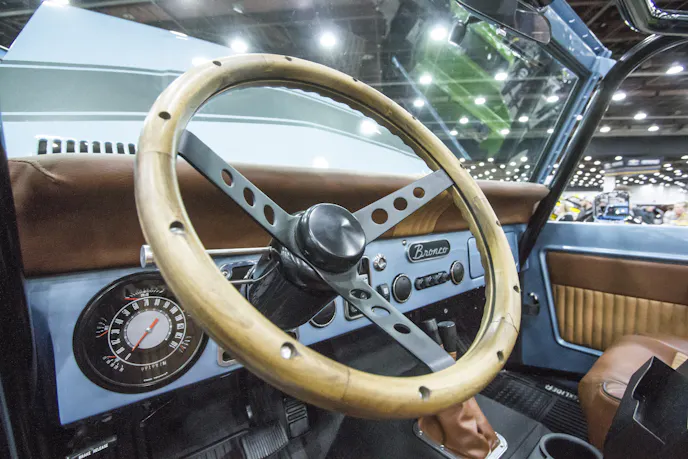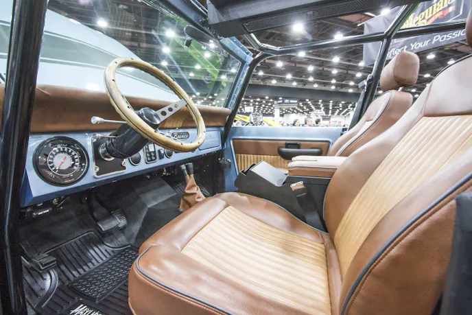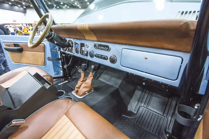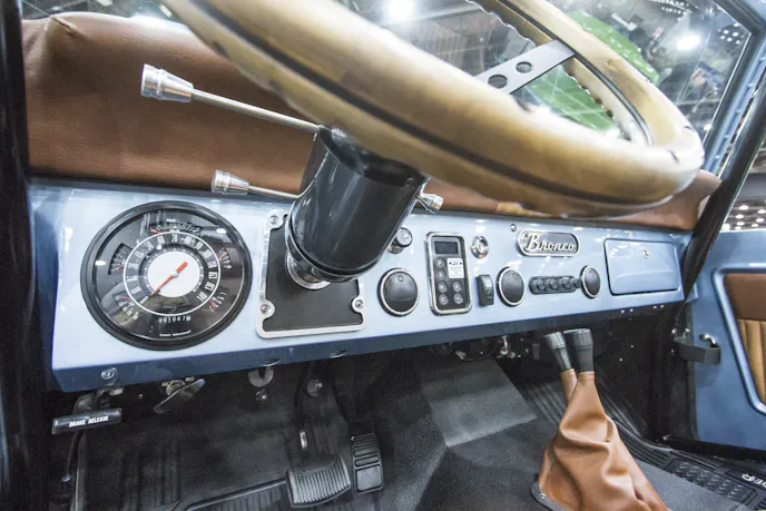 Inside the Bronco, comfort and practicality merge into awesomeness. Twin City Upholstery handled the custom interior that features a Classic Instruments gauge cluster and Bestop TrailMax 2 seats. There are also many various parts from Wildhorses4x4. Their installation is seamless, with the peerless quality and attention to detail that is prevalent throughout the build.