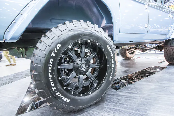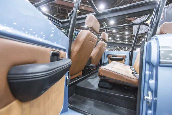 The front suspension features a four-link with long arms, so you can be certain that those 37s stay planted. The three-link rear with long arms handles the flex in the rear. Fox coilovers reside on each corner, so you know that the big Bronco can absorb any hits. A modular front clip was also added to ensure that any maintenance can be handled hassle free and to encapsulate that trademark grille we spoke about earlier.