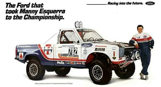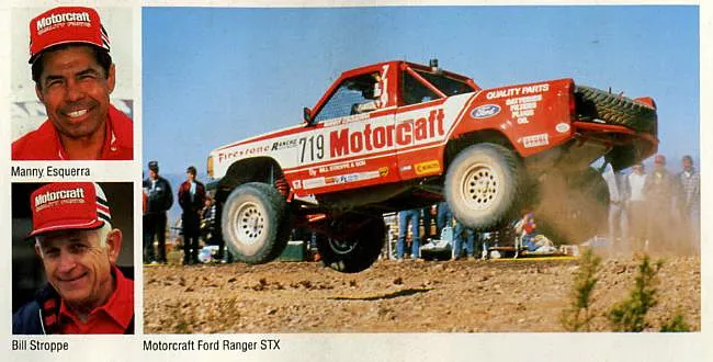 The second Rough Riders team was that of legendary car builder Bill Stroppe. Stroppe is said to be responsible for giving Ford the undeniable bragging rights throughout the deserts of the southwest. With the onset of the 1981 race season, Stroppe hired a young driver that would become known, over a career of more than 30 years, as the King of the Desert: Manny Esquerra. These two men teamed up for over a dozen major series championships.