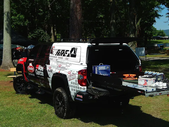 Yet one of his favorite alterations are the A.R.E. Z Series truck cap, A.R.E. pickup vault lockable storage drawers that integrate right into the truck’s bed, and the A.R.E. rod pods mounted atop the truck cap for holding angling gear. Lucas said, “They make the truck so easy to use on the road and at the tournaments.”