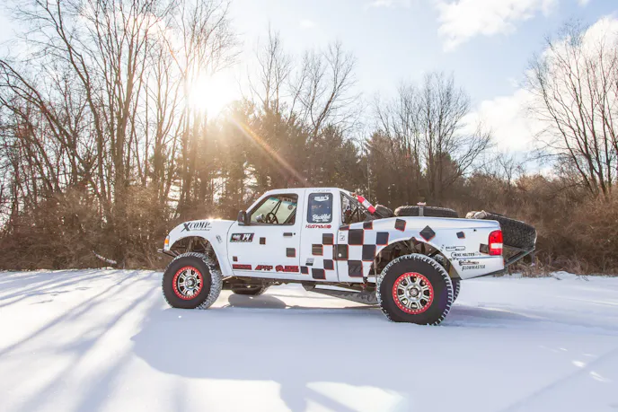 In 2010 Tyson purchased the rig you see here. He explained, “My truck started as a 1997 Ford Ranger that was bought brand new. The original owner took it to Camburg Engineering in 1998 for some off-road modifications that snowballed into a full build. It was their first customer build.” Tyson purchased the truck in July 2010. The original owner had moved from Southern California to North Carolina for a career change. The truck had sat for four years and needed a new home. Tyson was all too happy to step up.