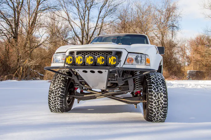 In 2010 Tyson purchased the rig you see here. He explained, “My truck started as a 1997 Ford Ranger that was bought brand new. The original owner took it to Camburg Engineering in 1998 for some off-road modifications that snowballed into a full build. It was their first customer build.” Tyson purchased the truck in July 2010. The original owner had moved from Southern California to North Carolina for a career change. The truck had sat for four years and needed a new home. Tyson was all too happy to step up.