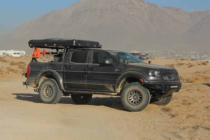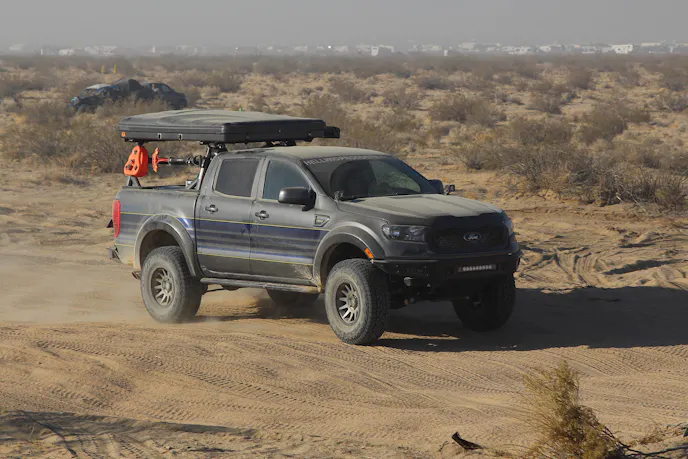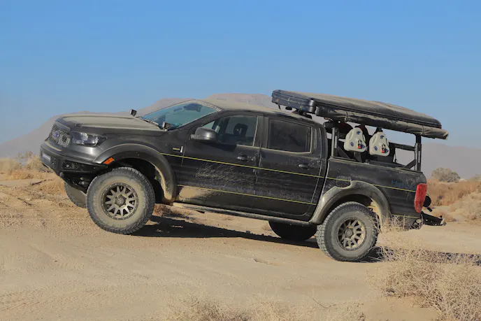 One of these vehicles was a 2019 Ford Ranger, revamped to give a whole new meaning to “overlanding.” We got the chance to check out this Ranger in more depth. We also drove it around the bumpy, dusty lake bed, and saw what it was truly capable of.