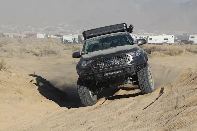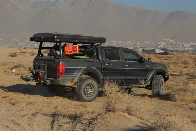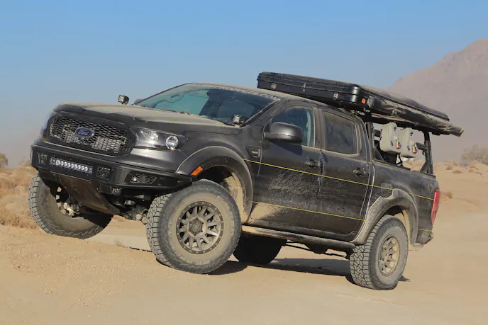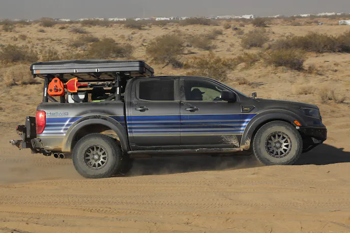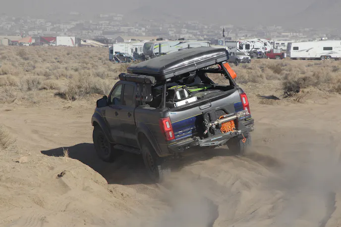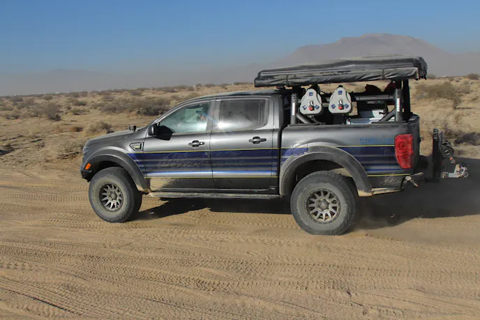 One of these vehicles was a 2019 Ford Ranger, revamped to give a whole new meaning to “overlanding.” We got the chance to check out this Ranger in more depth. We also drove it around the bumpy, dusty lake bed, and saw what it was truly capable of.