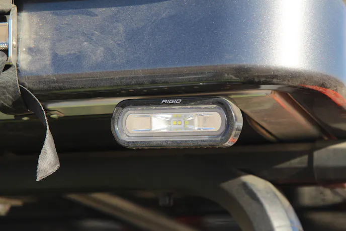 Lighting is courtesy of Rigid Industries, and they’re all over the truck. Pods inside the bumper and on the hood give excellent forward projection, while accent lights on the rear give ample illumination for nighttime. Controls for the lighting can be accessed thanks to an sPOD Bantam system. Out back, the backbone is the Yakima storage rack and BEDSLIDE sliding system, providing ample storage space for all of the odds and ends.