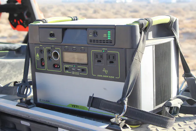 All of this is terrific, and it gets better. For any electronics one brings to the great outdoors, the Goal Zero YETI power station is ready to deploy with 110-volt, 12-volt, and USB connections. It can recharge thanks to a set of deployable solar panels.